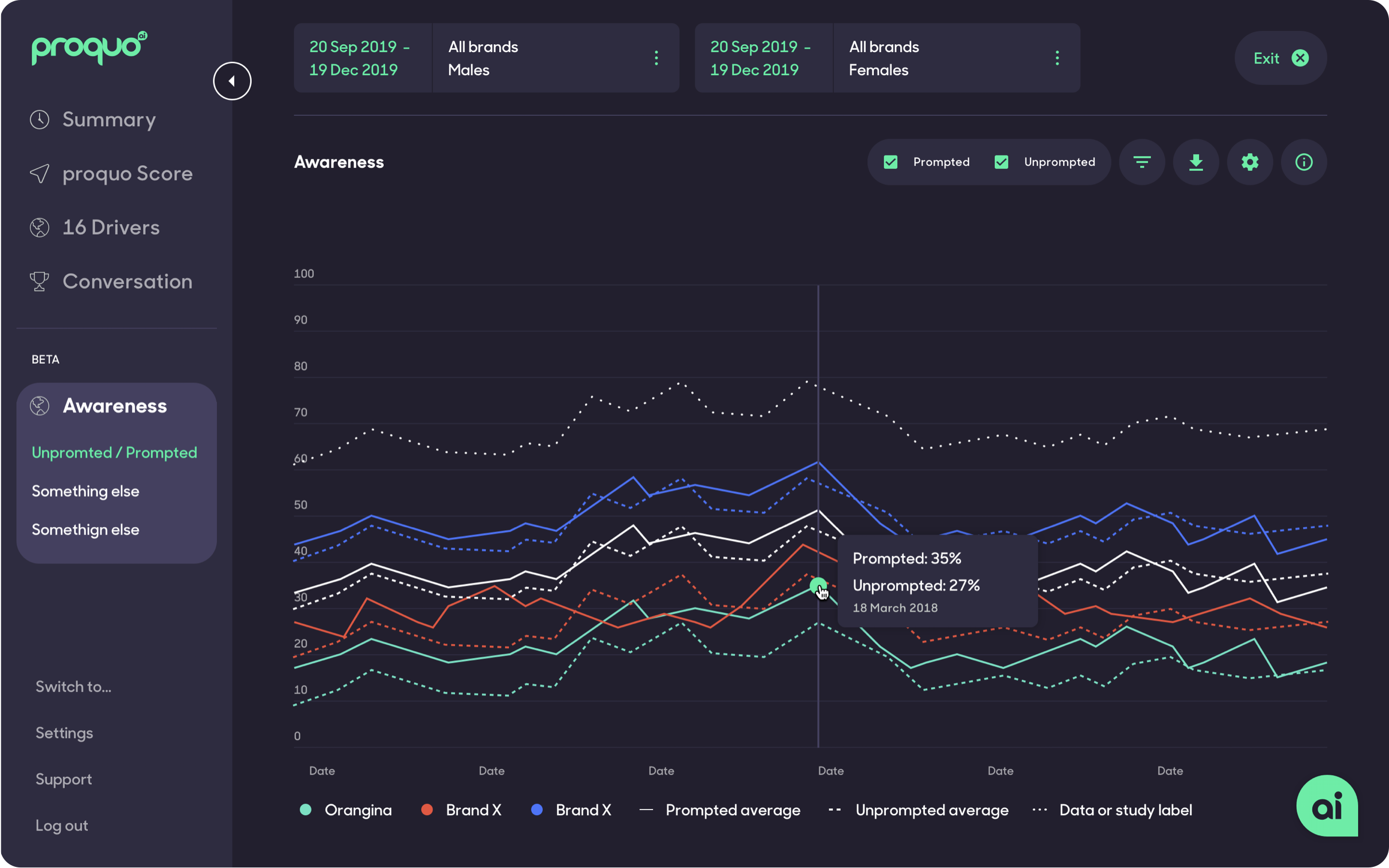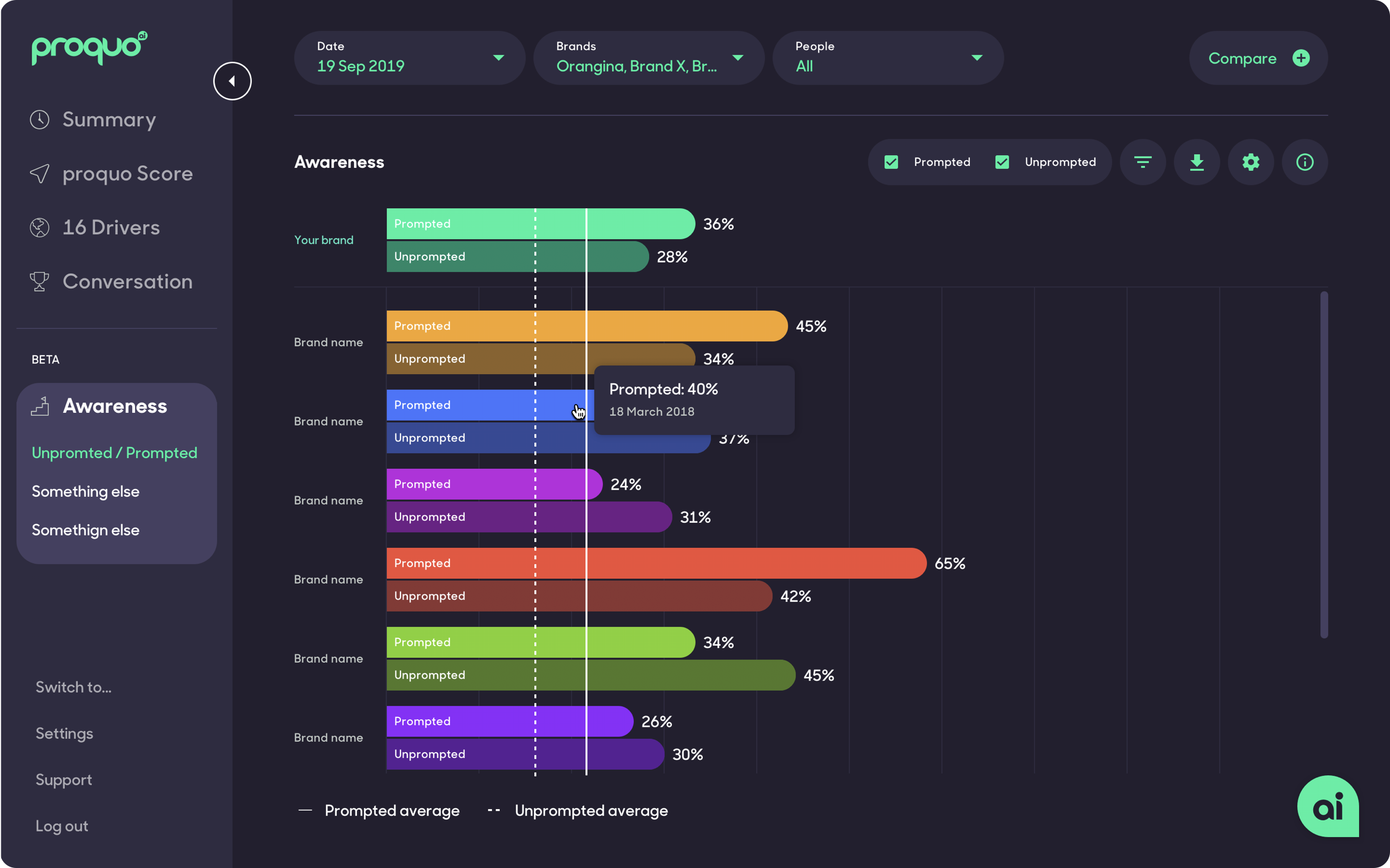 If you're interested in keeping eyes on your brand awareness, ProQuo AI can help – we offer both unprompted and prompted awareness tracking.
