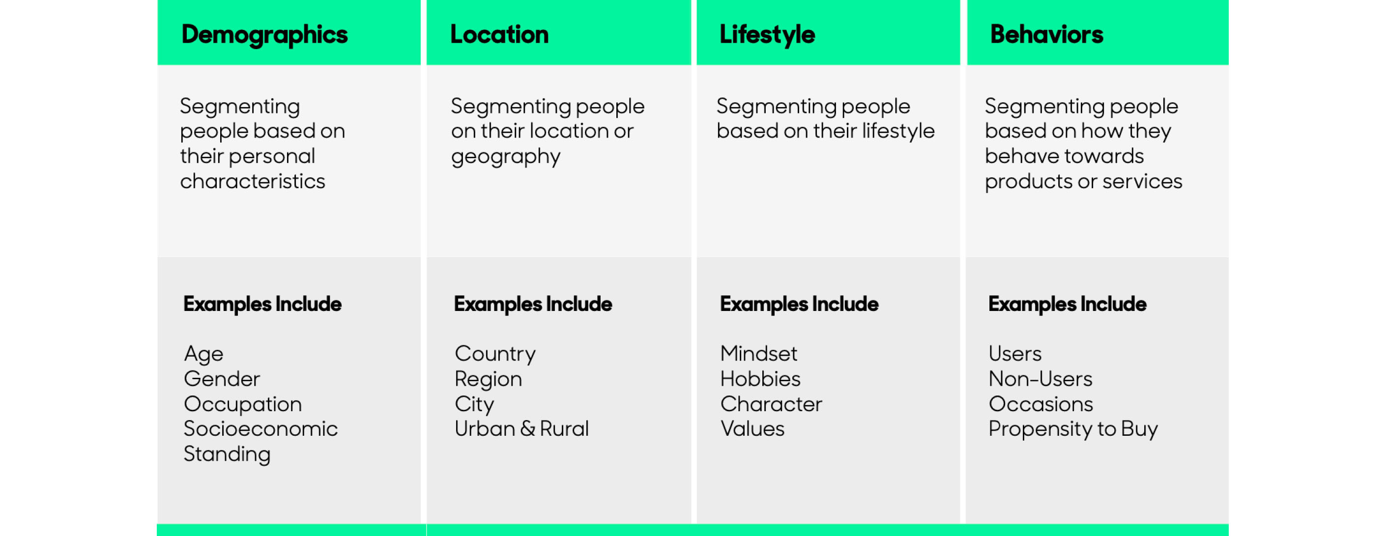 You can slice and dice your audience in many ways. How you divide your audience will depend on the objective of your NPD:
